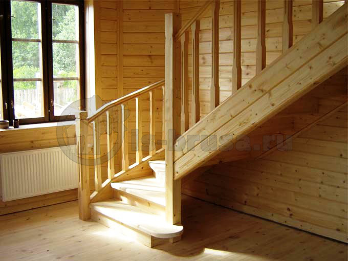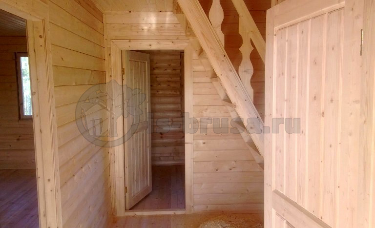 - после проведения внутренней отделки дома из бруса устанавливается лестница;